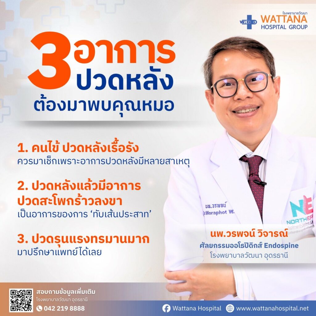อาการปวดหลัง ร้าวสะโพก หรือชาขา เป็นหนึ่งในปัญหาสุขภาพที่พบได้บ่อยในทุกช่วงวัย โดยเฉพาะในยุคที่ผู้คนใช้เวลานั่งทำงานนานขึ้น หรือเคลื่อนไหวน้อยลง ซึ่งหลายคนอาจมองว่าเป็นอาการเล็กน้อย แต่แท้จริงแล้วอาจเป็น “สัญญาณเตือนของโรคกระดูกสันหลัง” ที่ควรได้รับการตรวจวินิจฉัยอย่างถูกต้อง นพ.วรพจน์ วิจารณ์ แพทย์ผู้เชี่ยวชาญด้านออร์โธปิดิกส์ จาก Endospine Center -ศูนย์กระดูกสันหลังและข้อ รพ วัฒนา อุดรธานี อธิบายว่า สาเหตุของอาการปวดหลังส่วนใหญ่เกิดจาก “พฤติกรรมการใช้ร่างกายผิดวิธี”ที่สะสมจนเกิดการเสื่อมของหมอนรองกระดูกสันหลัง “การก้มยกของผิดท่า การยกของหนักเกินกำลัง หรือการนั่งกับพื้นนาน ๆล้วนทำให้กระดูกสันหลังรับแรงกดมากกว่าปกติ จนหมอนรองกระดูกมีโอกาสแตกและเสื่อมได้ง่ายขึ้นครับ”