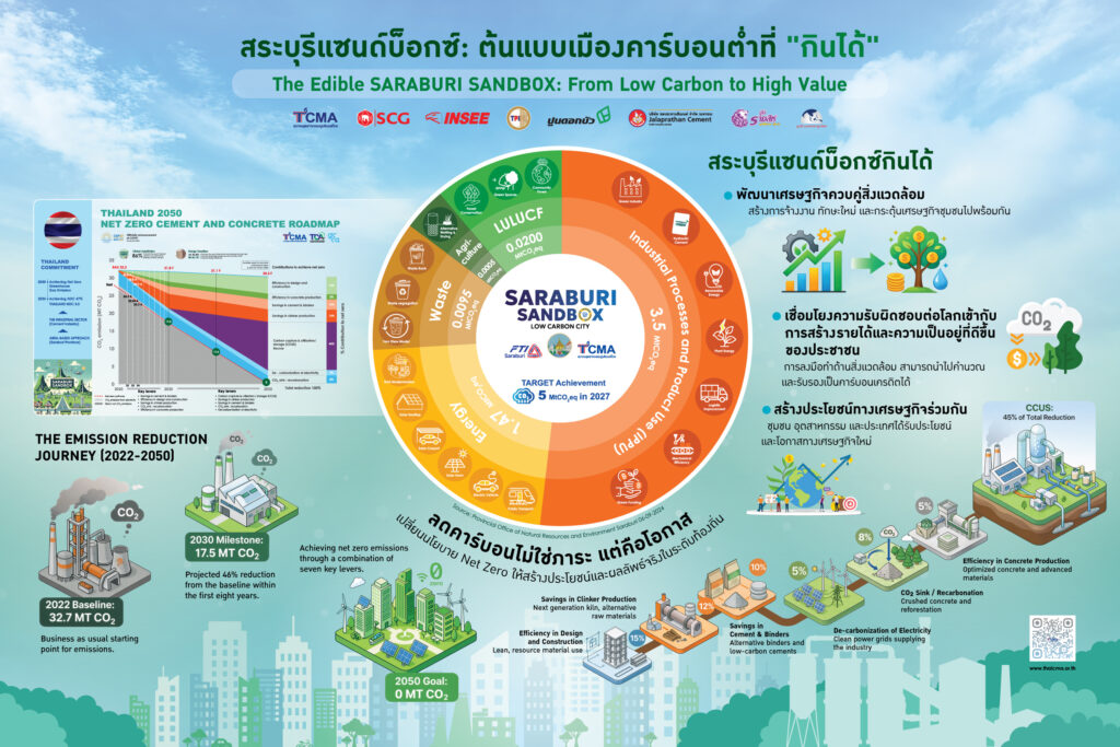 Thai Cement Manufacturers Association (TCMA), in collaboration with Saraburi Province, government agencies, the private sector, and civil society, are accelerating the development of Thailand’s first low-carbon city under the concept of “SARABURI SANDBOX: Edible”. The initiative opens pathways toward a provincial level carbon market and reinforces a new perspective that ‘carbon reduction is not a burden, but an economic opportunity’, supporting Thailand’s goal of achieving Net Zero emissions by 2050.